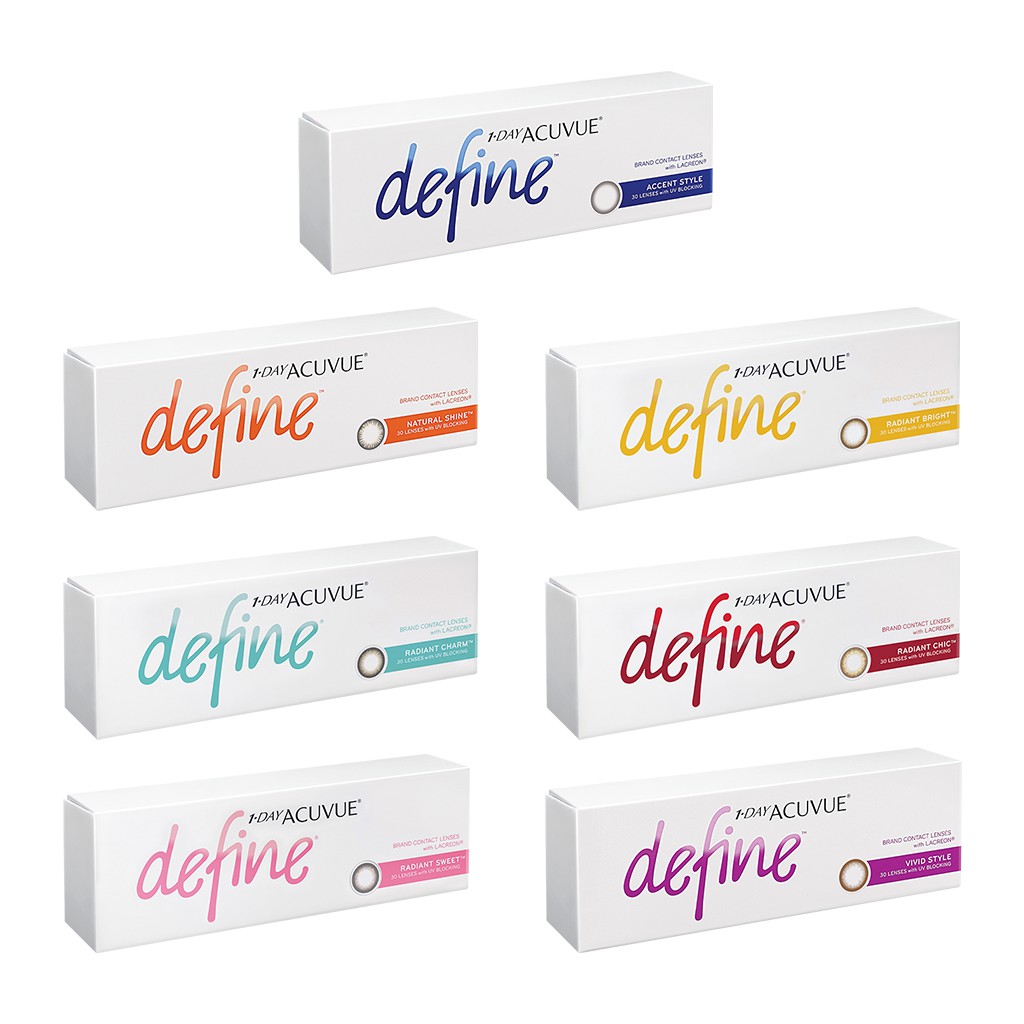 Experience ACUVUE today and enjoy up to RM60 off your first purchase. Acuvue Define comes in 3 different colors and styles. Up to 10 cash back This eye enhancing lens comes in three designs made to blend seamlessly with the color of your eyes while giving you a look that is distinctively yours.